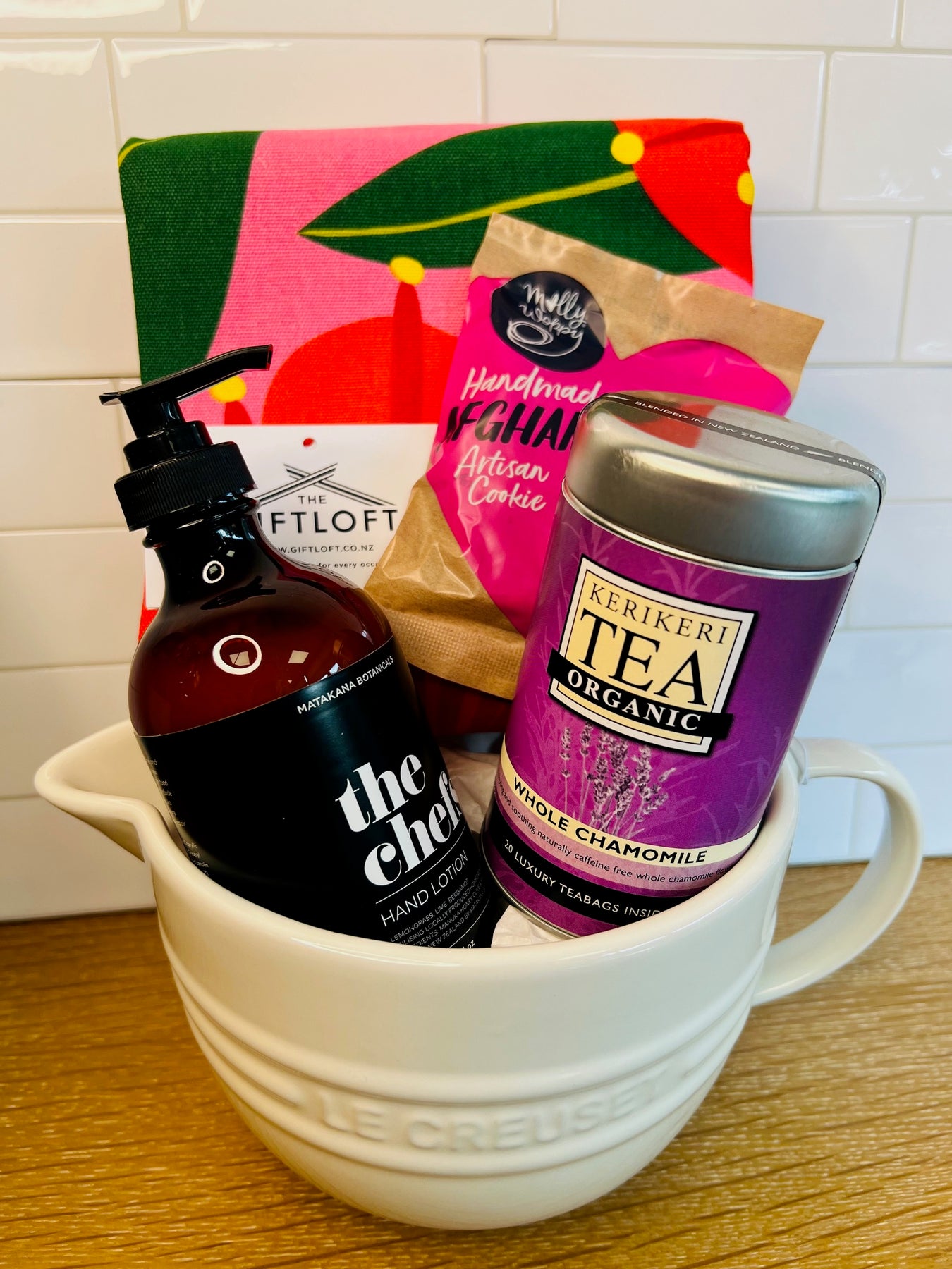 A beautiful gift for her - a baker, or a mother, grandmother, or daughter who appreciate finest quality kitchenware.  Le Creuset Mixing Bowl is the perfect mixing bowl for baking, or use for pancake mixture, beating cream, making meringues, or icing. It is shaped as a jug for easy pouring. When not in use, it looks very stylish in a kitchen. The mixing bowl will be gift wrapped and the goodies boxed separately in a stylish magnetic closure gift box in white with flip lid & bespoke ribbons & a gift card for your message.