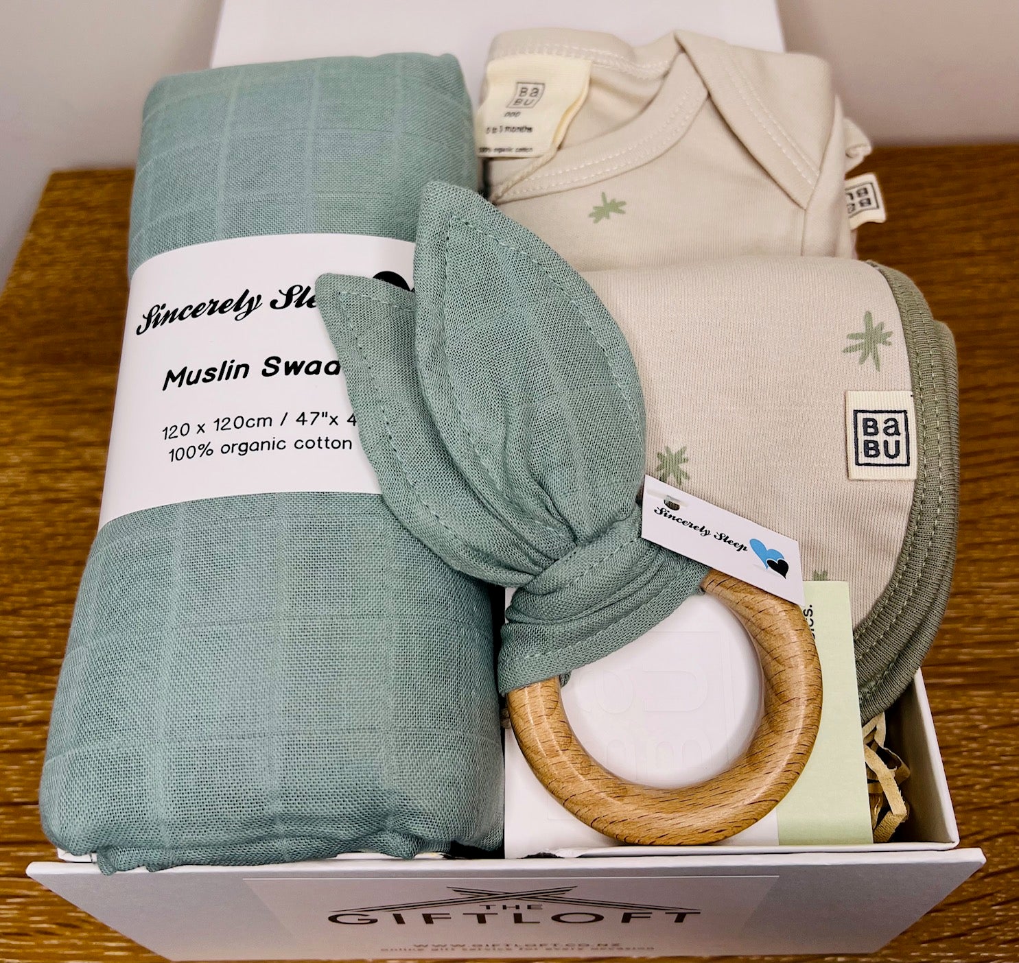 All enclosed in a stylish gift box with lid. A gift idea for a work colleague going on maternity leave, a "congratulations" gift for a family member or friends with a new baby, a high quality gift idea.