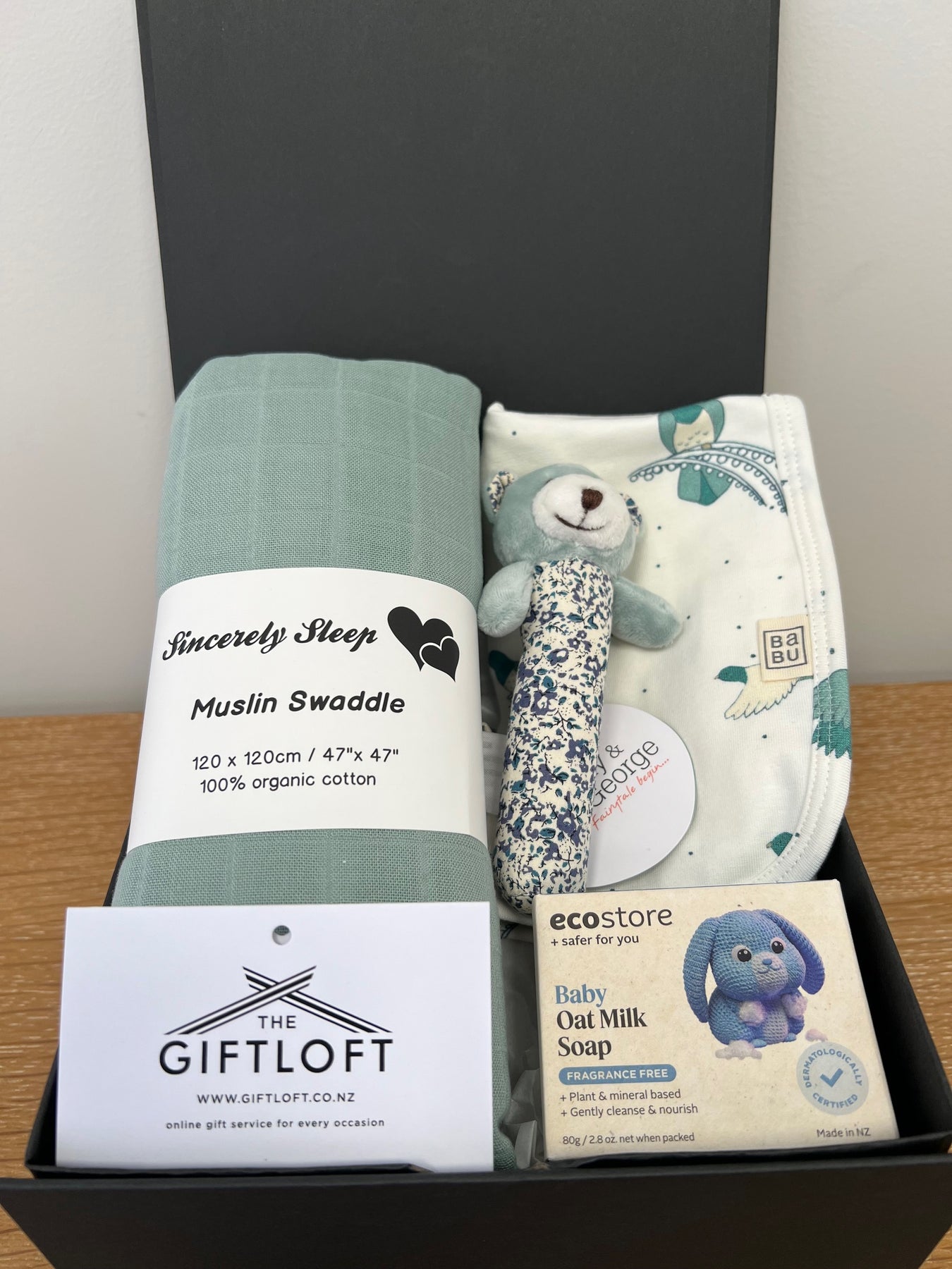 Great value & unique - a baby shower gift idea. Free wrapping & gift card for your message. Delivery NZ wide - fast and efficient service. We will be transitioning from grey to sage colour swaddles soon.
