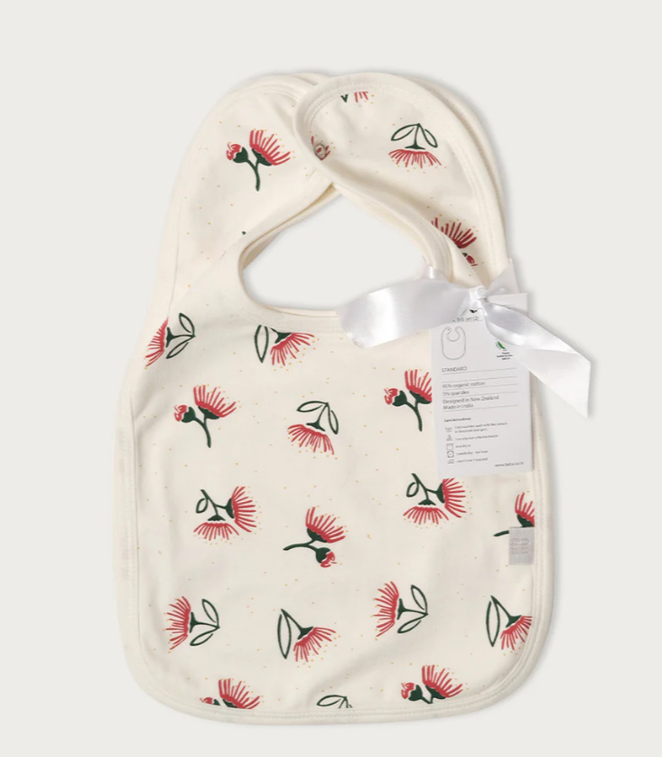 - One Babu 100% cotton bib in two different designs; Pōhutukawa or Kererū design;